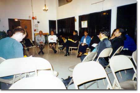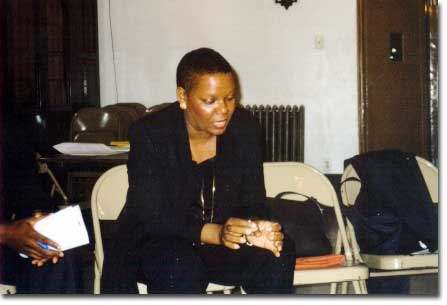 Florence Cameau, speaker, discussing domestic violence in the Haitian